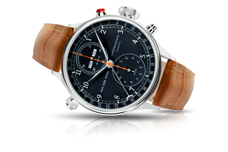 De nieuwste Original binnen de familie is uitgevoerd met een mat zwart gelakte wijzerplaat. Het horloge is in zowel gehard staal als rosé goud (op aanvraag) leverbaar. De centrale secondewijzer van het horloge is in de basis gerodineerd, maar voor een iets sportievere uitstraling ook in helder oranje naar keuze uit te voeren. De knop voor de bediening van de chronograaffunctie is uitgevoerd in de kleur rood.