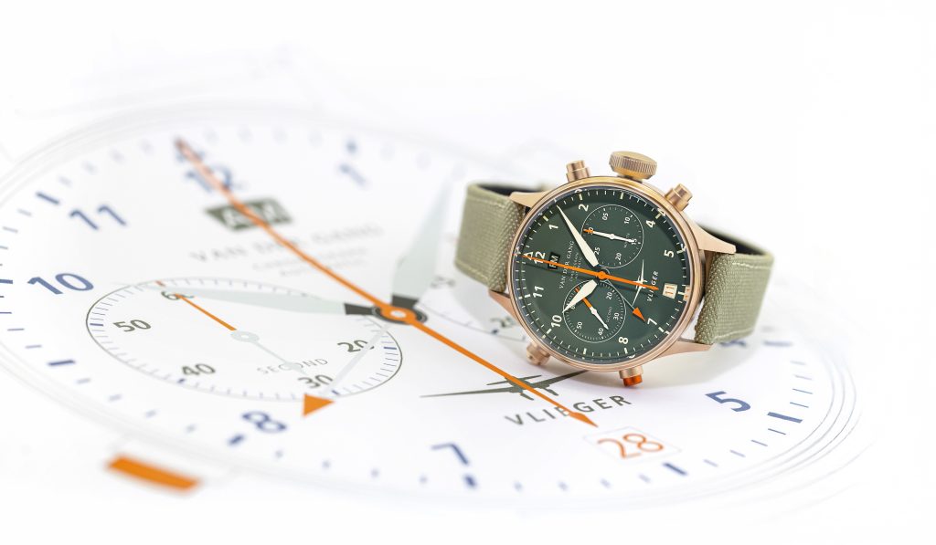 De nieuwe Vlieger is vernieuwd in ontwerp en kleur. De wijzerplaat heeft een subtiele groentint in het antraciet gekregen en wordt gecombineerd met een bredere, feloranje wijzer die direct opvalt en het horloge zijn sportieve karakter geeft. De oranje wijzers worden in onze eigen manufactuur met de hand gelakt. Ook de wijzers van de subdials zijn breder uitgevoerd, wat zorgt voor een krachtig en evenwichtig geheel. Ontwikkeld vanuit techniek, met aandacht voor ieder detail.