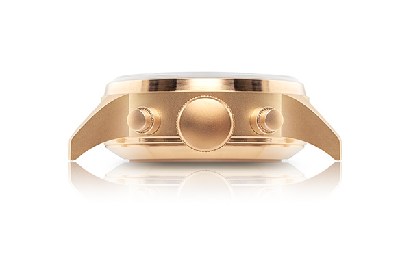 Functions: Hours, minutes, seconds, date, 12-hour second time zone with AM/PM indication, chronograph (minutes, seconds)