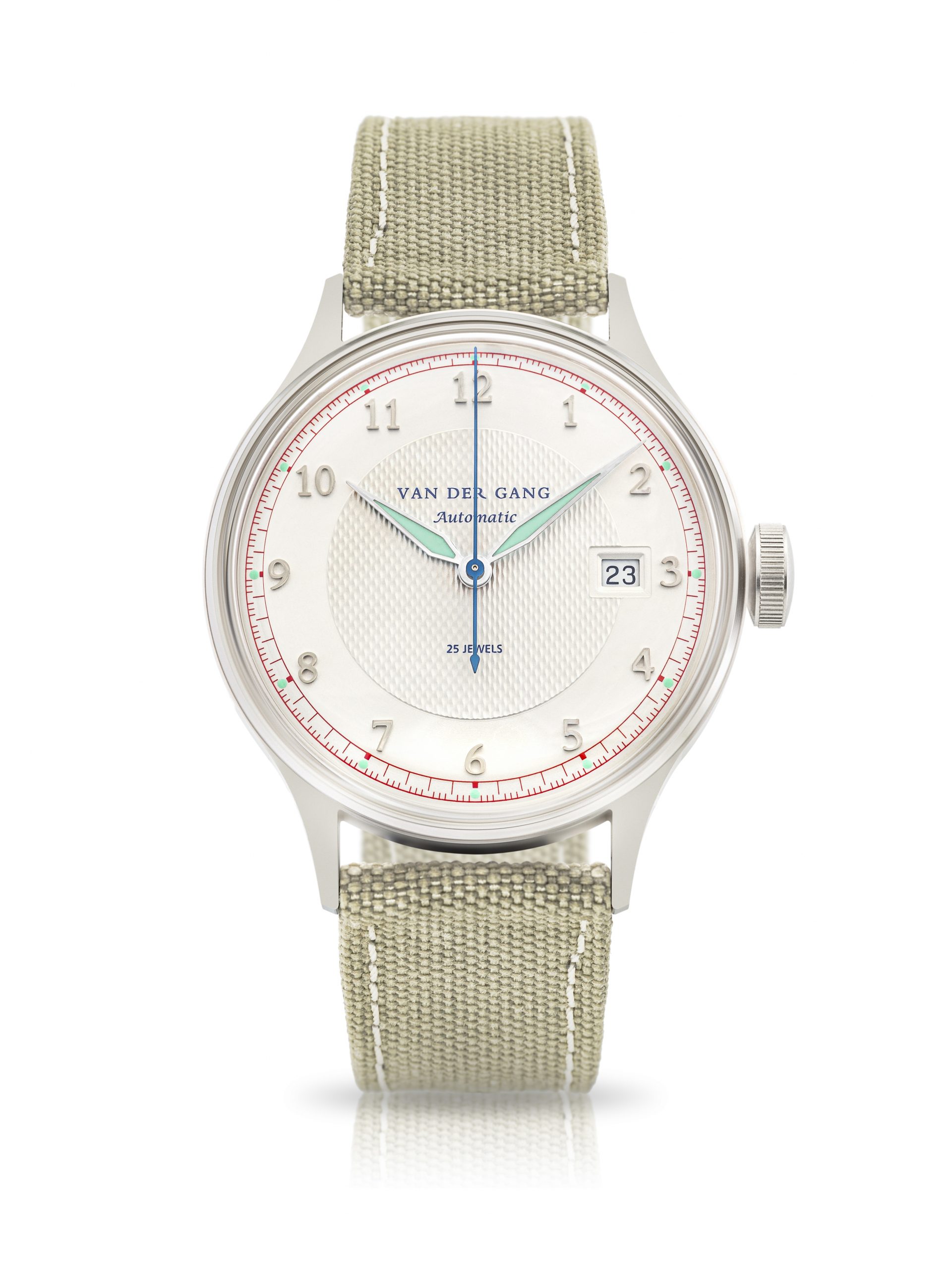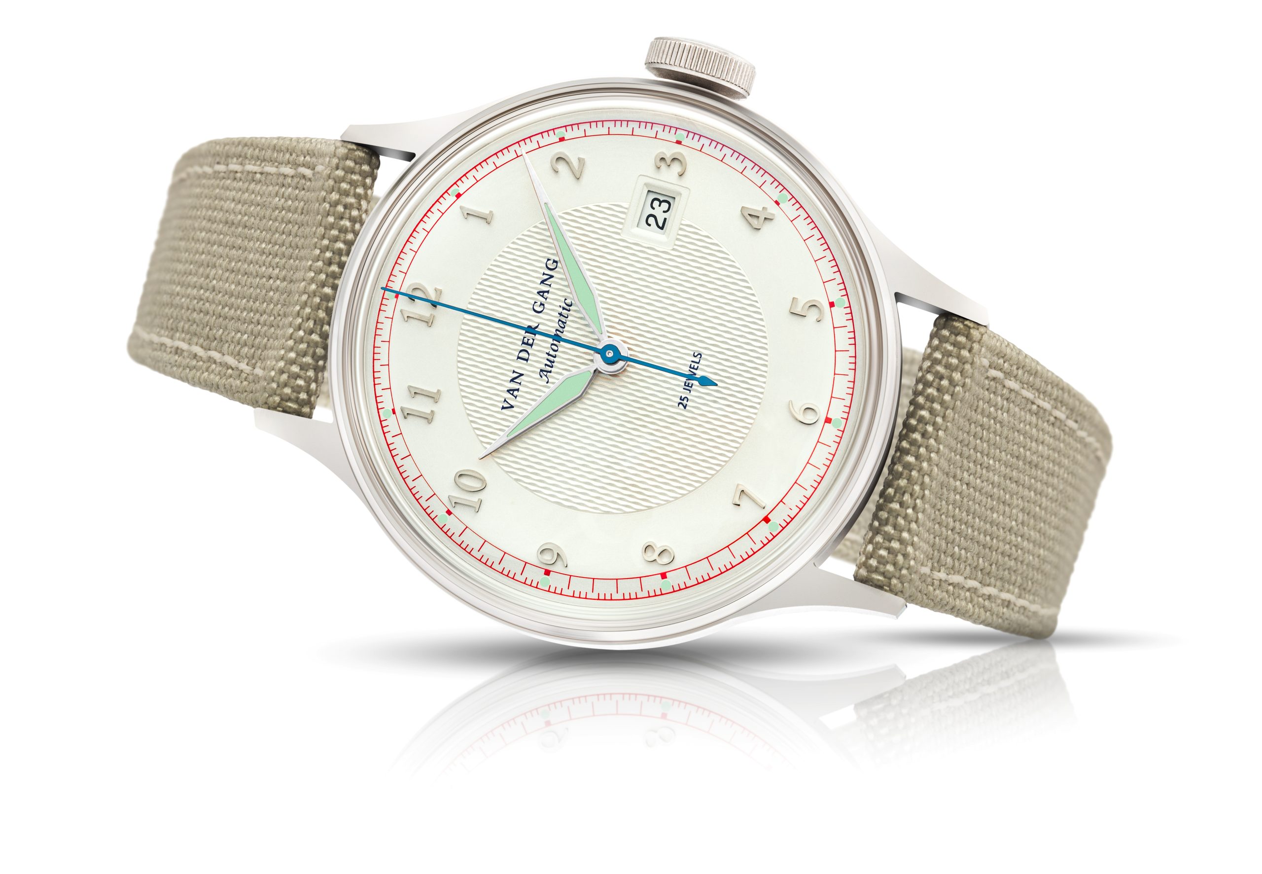 Feel barely like you're wearing a watch with this thin 'unisex' steel watch. It is the thinnest watch in the Van der Gang Watches collection. The dimensions are striking: this watch features a modest stainless steel case that can be finished in either polished (20053BWT Rg) or matte satin (20053BWT Rg-S). The case is only 9 mm thick and has a diameter of 38 mm. This gives the watch a nice intermediate size, making it very wearable for both men and women. In addition to the dimensions, the design is also remarkable compared to the existing collection. The white silvered dial features a guilloché pattern. The luminous hour and minute hands have a rhodium-plated edge. Time and date are controlled with the crown at 3 o'clock. Limited edition of 364 pieces.
