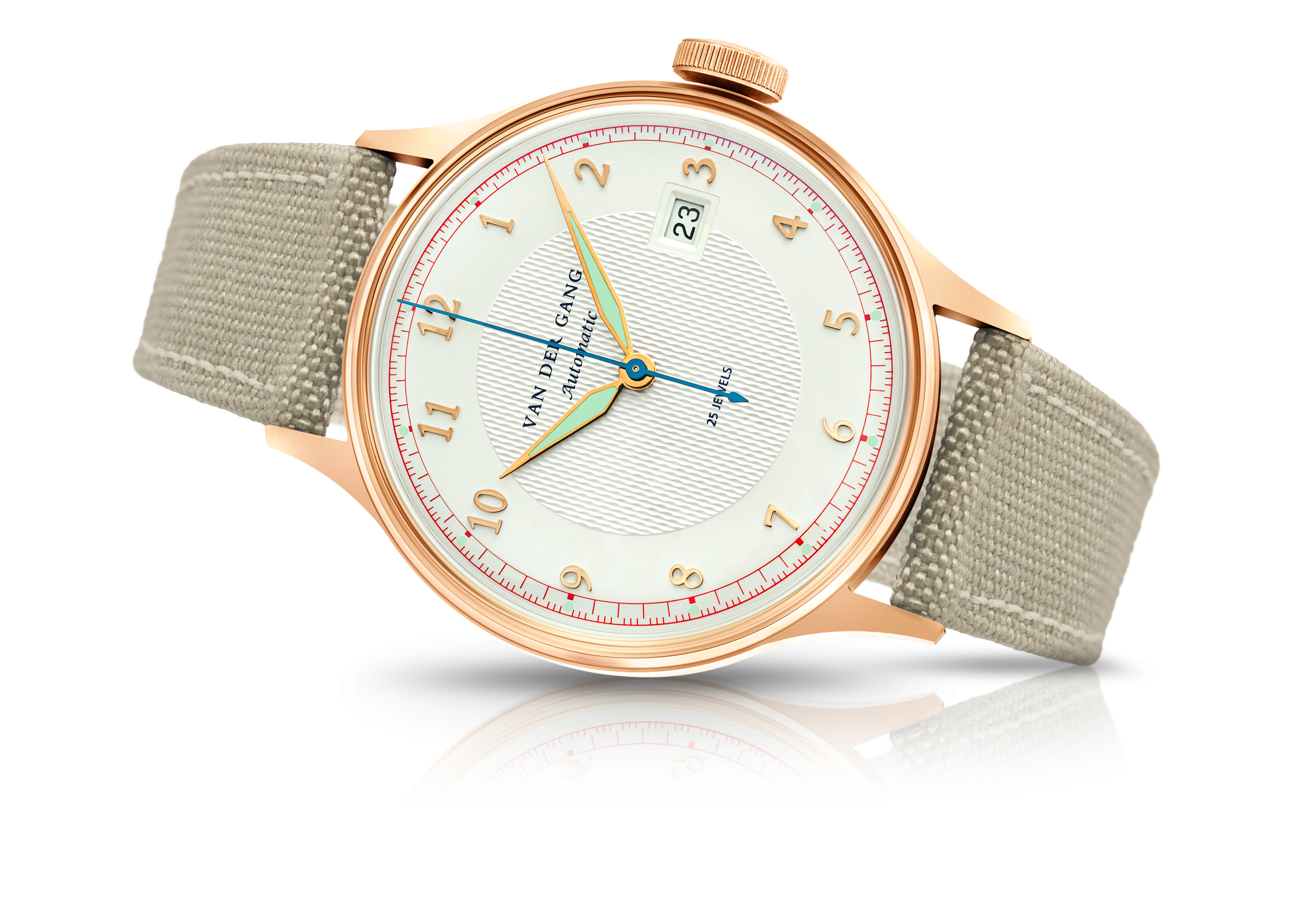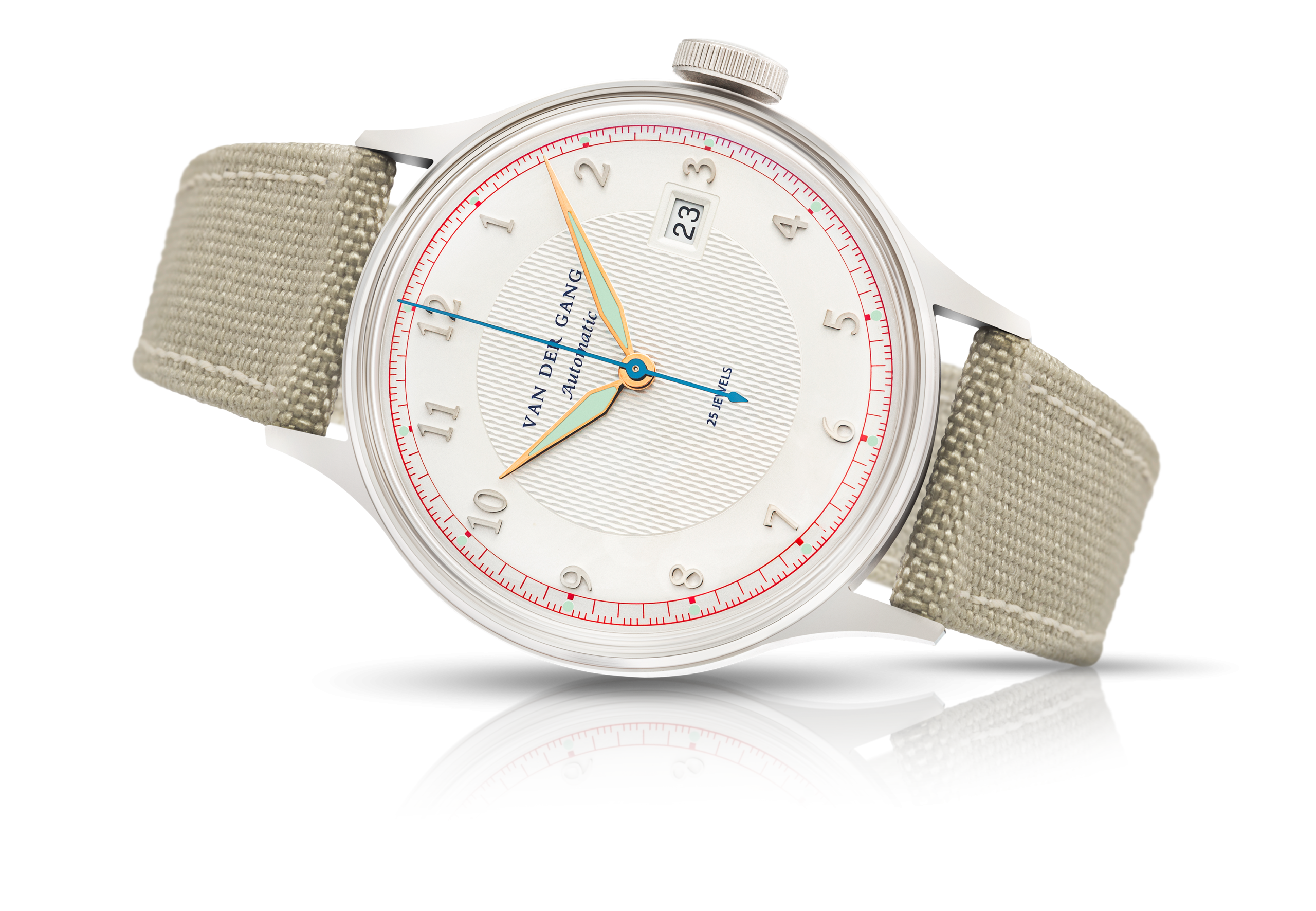 Watch of this time. The 20053 is the latest model from Van der Gang Watches. The size of this model makes it suitable for both ladies and gentlemen. The guilloche on the dial combined with the domed glass gives it a classic look. The sleek finish of the case and the color combination of the dial and hands make it a watch of this time.